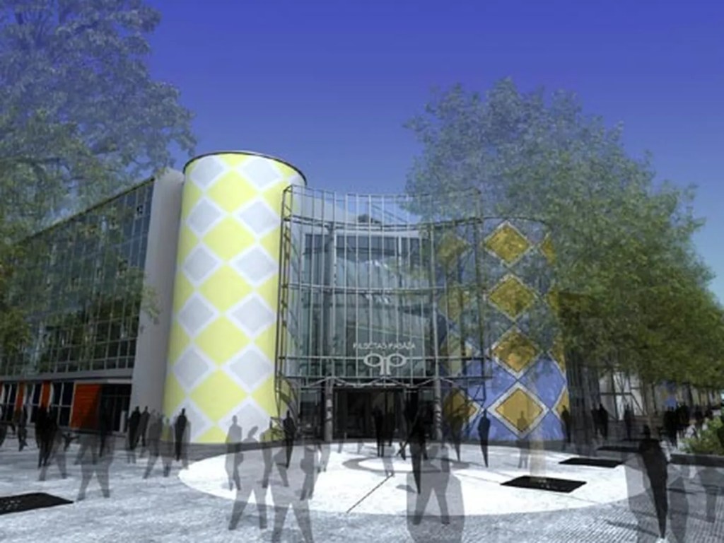 Sākotnējā tirgus, tirdzniecības centra un autoostas vizualizācija no ERA2K TT, SIA. Autori: Statio Arhitektūra.