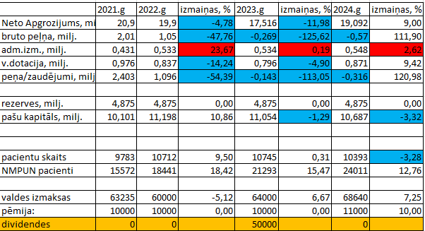 Ārsts K. Vaivods savos izteikumos vērsis uzmanību tieši uz situāciju slimnīcā pēdējā gadā, kas viņam, kā vadībai nepietuvinātam speciālistam likušies aizdomīgi. Pēdējos gados slimnīcas peļņas rādītāji ir krasi pasliktinājušies un vēl straujāk zaudējmi palielinājušies 2025. gada pirmajā pusgadā.