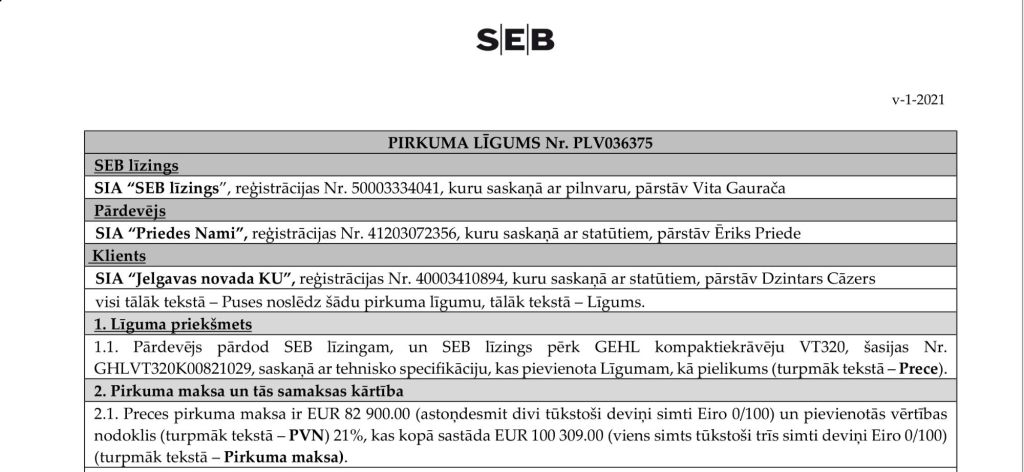 Vēl viens uzskatāms piemērs no daudziem Stašāna ziņojumos konstatētajiem pārkāpumiem ir kompaktiekrāvēja iepirkums. Līdz 2021. gada 20. decembrim Elektroniskajā iepirkumu sistēmā pretendenti varēja sniegt savus piedāvājumus kompaktiekrāvēja piegādei. 22. decembrī iepirkuma komisija U.Lonerta vadībā par iepirkuma uzvarētāju atzina uzņēmumu SIA “Kono”, kas piedāvāja pārdot kompaktiekrāvēju par 74 000 EUR. SIA “Kono” mājas lapā varam pārliecināties, ka uzņēmums sniedz atbilstošu pakalpojumu, kas atbilst iepirkuma konkursa prasībām, nodrošina apkopes servisu.